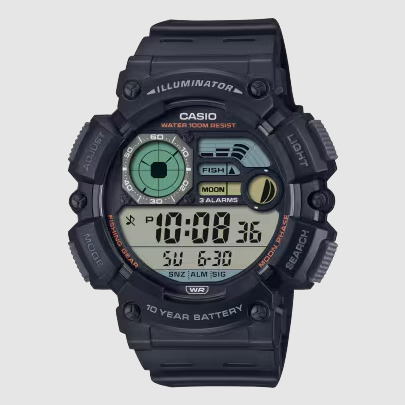 Domina el ritmo de la naturaleza y mejora tus capturas. Este robusto reloj Fishing Gear destaca por su indicador de pesca basado en la luna, resistencia al agua de 100 metros y una legendaria batería de 10 años, ofreciendo toda la tecnología necesaria para el pescador moderno en un diseño imponente.