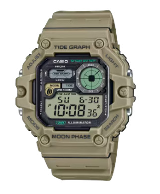 Precisión de navegación en un acabado industrial sofisticado. Este imponente reloj digital destaca por su gráfico de mareas y fases lunares, una extraordinaria batería de 10 años y resistencia al agua de 100 metros, ofreciendo una estética técnica en gris ceniza diseñada para quienes exigen funcionalidad total en exteriores.